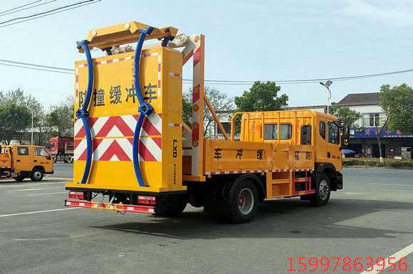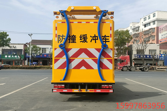 防撞碰碰車是指在汽車后部帶有防撞緩沖墊的卡車。停在建筑區(qū)后面。如果一輛車沒有看到后面來的施工區(qū)域,防撞碰碰車的緩沖墊可以吸收沖擊能量,保證前方施工人員的安全。