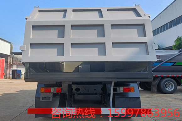 上裝標配:邊4mm,底5mm,前置油缸,后門液壓開啟,帶密封條,可加裝手動鎖緊裝置,箱體密封不漏液,駕駛室內外操作,帶污水槽及污水箱。