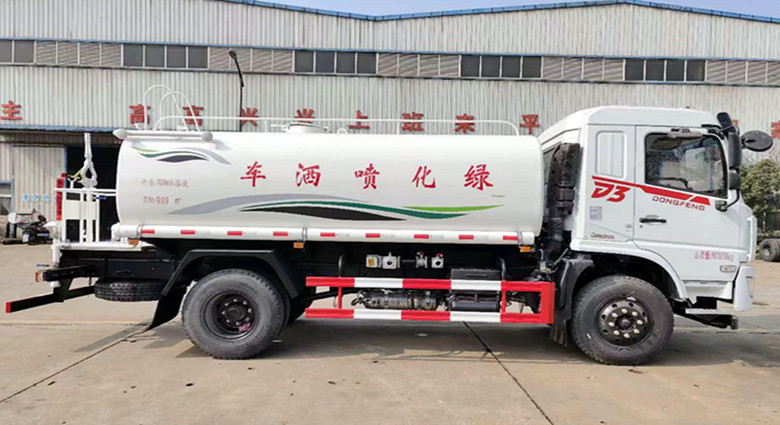 上裝配置:罐體采用4mm厚優(yōu)質(zhì)碳鋼板制作,容積約12.6立方,底板加厚,億豐60-90型優(yōu)質(zhì)大功率專用灑水泵,取力器,雜物過濾網(wǎng),國標通用65型消防接口、1套自流球閥系統(tǒng),兩根引水鋼絲膠管,標配前對沖、后灑、后側(cè)噴,罐體右后高位花灑,高壓軸承水炮,一次成型沖孔平臺,2個安全示廓燈,LED高亮度邊燈及示廓燈,可視水量管,其它灑水車標準配置。