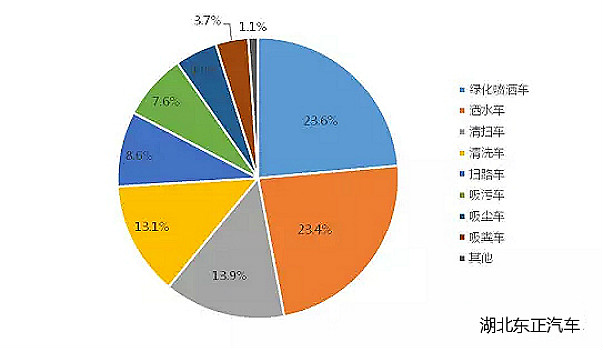 2017年1~7月市政環(huán)衛(wèi)車各細分市場結(jié)構(gòu)