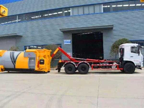 勾臂垃圾車【車廂可卸式垃圾車】車體和垃圾箱可完全分離,由液壓系統(tǒng)來完成收箱/放箱,在平日里可將車載垃圾箱放置到各個垃圾收集點(diǎn),待垃圾收集滿后,該車可直接開赴收集點(diǎn),通過液壓系統(tǒng)的操控,可將垃圾車后座上加裝的勾臂放下,掛住站內(nèi)箱體前端的連接點(diǎn),將垃圾箱拉**車體的后座上,此時(shí)即可開動車輛,將垃圾運(yùn)送垃圾處理站內(nèi),進(jìn)行自卸式傾倒,優(yōu)點(diǎn)就是可一車配多斗,一輛車就可以維持?jǐn)?shù)個垃圾收集站的運(yùn)轉(zhuǎn),效率高,且箱體為密封式設(shè)計(jì),不會造成二次污染。