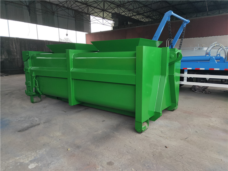 勾臂垃圾車配套移動垃圾箱外形以上梯形下長方形、上弧形下長方形、上弧形下弧形、長方形為主,箱體兩邊各帶一對或二對垃圾投入口或頂部開口,帶蓋式箱體能夠避免風(fēng)將輕質(zhì)垃圾(塑料袋,廢紙等)吹散和防止雨水進入箱內(nèi);箱體底部帶一對鐵輪方便吊上卸下時垃圾箱的移動,箱體后部可開啟【帶鎖緊機構(gòu),配備密封條】。勾臂垃圾箱外觀形狀、大小容積可根據(jù)用戶需求定制加工。