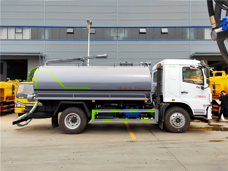 吸糞車專用部分由取力器、傳動(dòng)軸、真空吸污泵、油水分離器、水氣分離器、防溢閥、壓力罐體、液壓部分,管網(wǎng)系統(tǒng)、吸污導(dǎo)管、自流閥、真空壓力表、視糞窗、洗手裝置等組成。罐體采用Q235碳鋼板制作,罐體封頭一次壓鑄成型,吸污導(dǎo)管可自吸自排,隨車配置大功率真空吸污泵。
