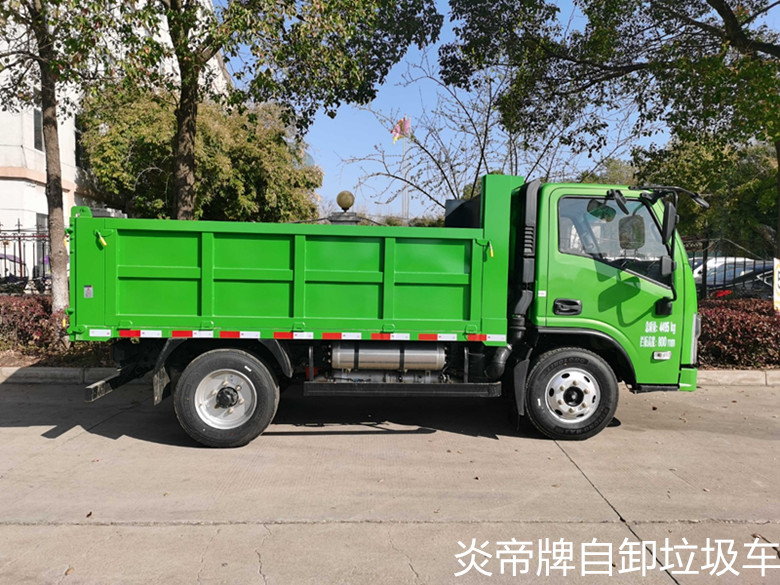 SZD5040ZLJDF6型自卸式垃圾車(chē);外形尺寸:4995×1950×2160;貨廂尺寸:3200×1800×800;總質(zhì)量:4495kg。